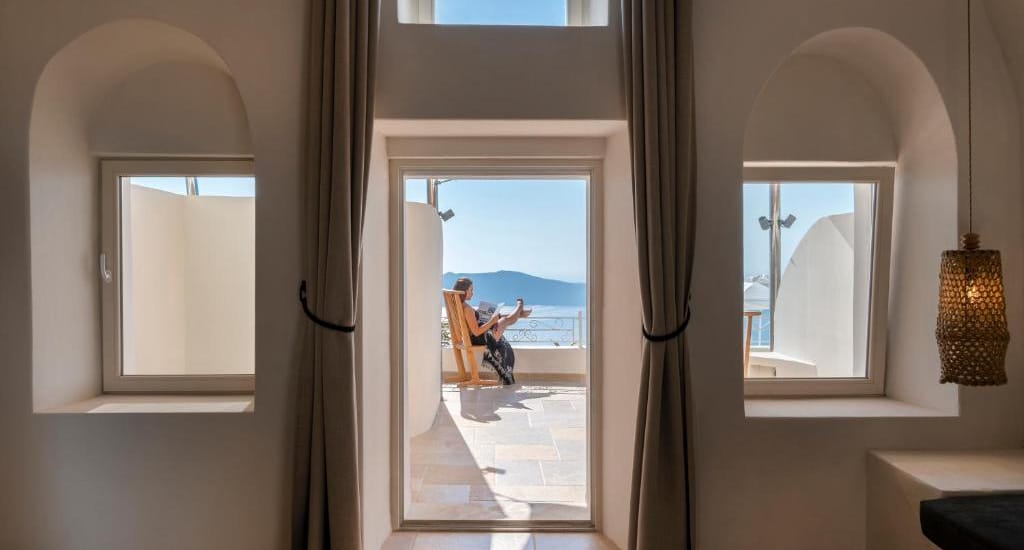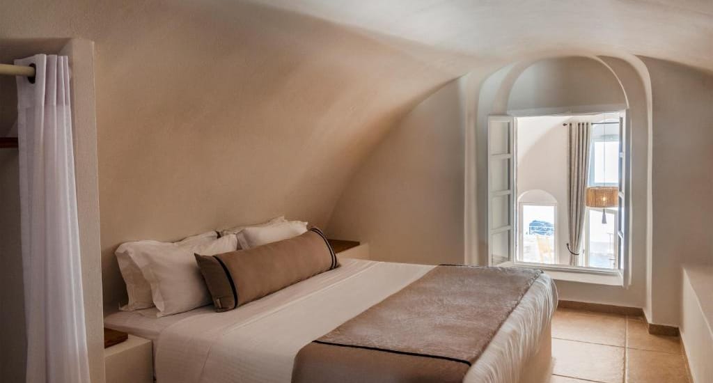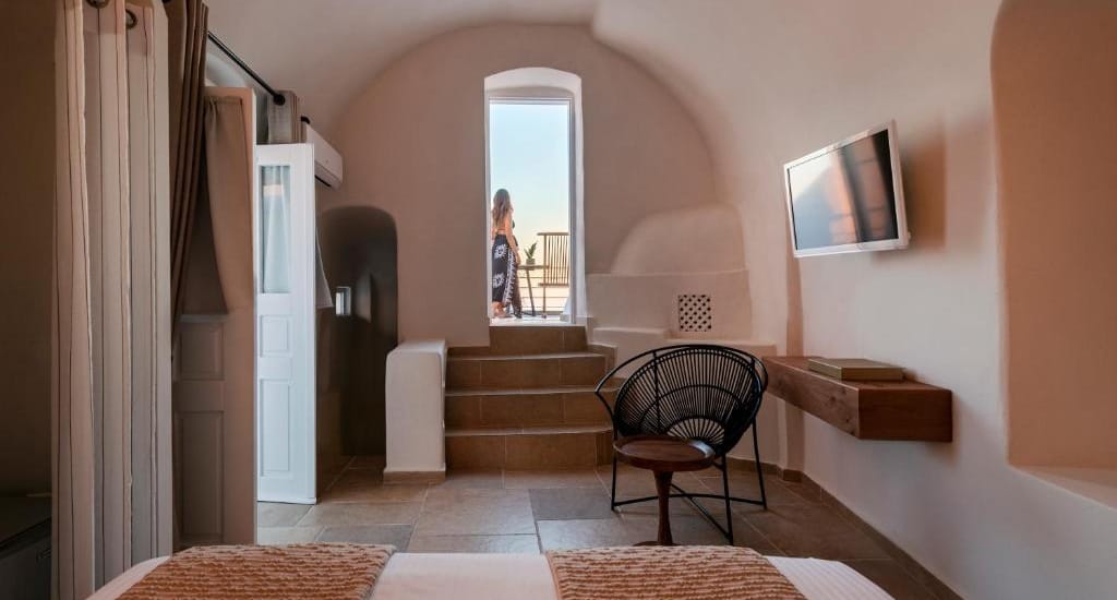 Αυτή η πρόσφατα ανακαινισμένη cave σουίτα προσφέρει μια τέλεια ισορροπία μεταξύ κομψότητας και άνεσης, διαθέτει ιδιωτικό μπαλκόνι και προσφέρει μοναδική θέα στο μαγευτικό ηλιοβασίλεμα και το απέραντο γαλάζιο του Αιγαίου. Ένας όμορφος παράδεισος γαλήνης και ηρεμίας για ζευγάρια που αναζητούν το δικό τους καταφύγιο στη Σαντορίνη.