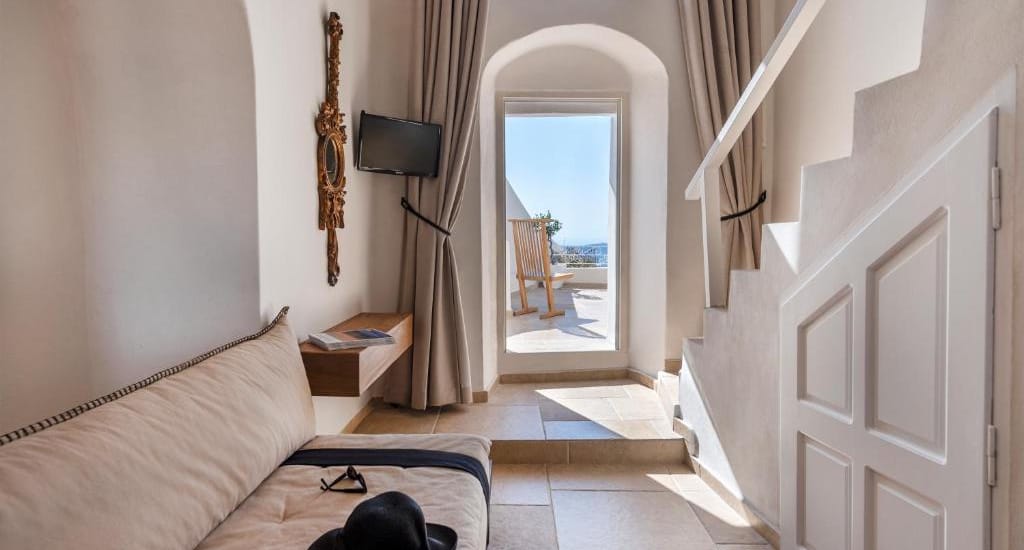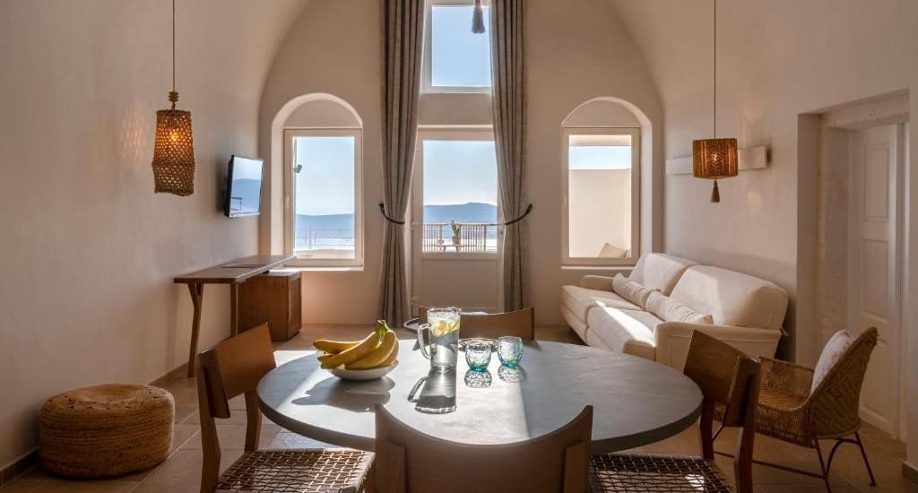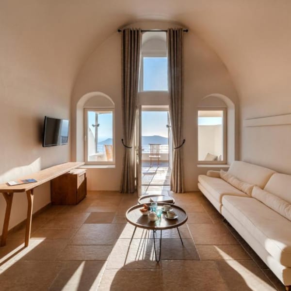 Καλύπτοντας 24 τετραγωνικά μέτρα απόλυτου μεγαλείου, αυτή η μαγευτική cave σουίτα είναι η ιδανική επιλογή για ένα ζευγάρι που επισκέπτεται το νησί της Σαντορίνης. Η Junior σουίτα διαθέτει άνετο καθιστικό, ένα όμορφο υπνοδωμάτιο με queen size κρεβάτι, μπάνιο με ντους και πανέμορφες βεράντες με θέα στην εκπληκτική Καλντέρα και το ηλιοβασίλεμα. Αποπνέοντας μια ατμόσφαιρα κομψότητας και ρομαντισμού, η σαγηνευτική αυτή σουίτα προσφέρει ένα ρομαντικό καταφύγιο για ζευγάρια που επιθυμούν να απολαύσουν μια αξέχαστη εμπειρία διαμονής.