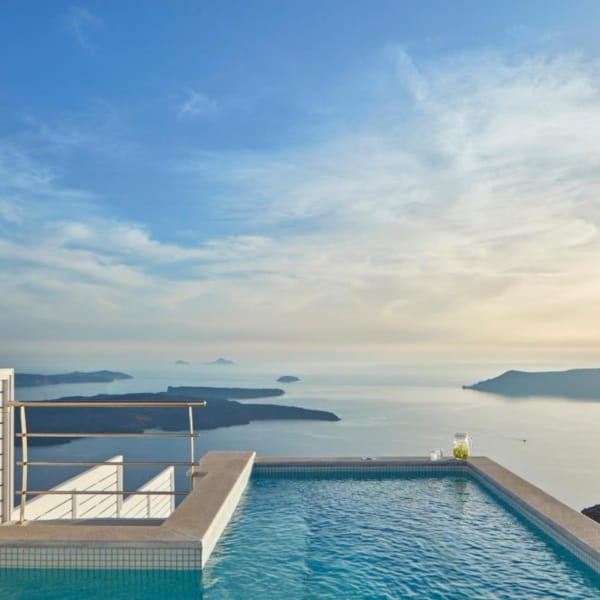 Σε μια έκταση 60 τετραγωνικών μέτρων, η Premiere Σουίτα καλωσορίζει τους επισκέπτες να απολαύσουν έναν κόσμο πολυτέλειας και άνεσης. Η σουίτα διαθέτει ένα ευρύχωρο σαλόνι, τραπεζαρία, 2 υπνοδωμάτια με Queen Size κρεβάτια και 2 μπάνια με ντους, καθώς και όλες τις ανέσεις για μια αξέχαστη διαμονή πέρα από κάθε φαντασία για μια οικογένεια ή φίλους που επισκέπτονται τη Σαντορίνη. Η Premiere Σουίτα είναι άρτια εξοπλισμένη και διακοσμημένη αποπνέοντας μια αύρα φιλοξενίας και ζεστασιάς. Διαθέτει επίσης ευρύχωρη βεράντα με μαγευτική θέα στο ηφαίστειο και στο ηλιοβασίλεμα.