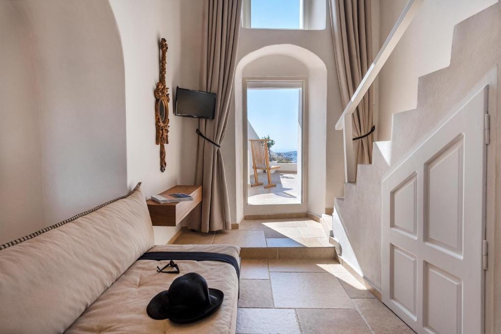 Αυτή η πρόσφατα ανακαινισμένη cave σουίτα προσφέρει μια τέλεια ισορροπία μεταξύ κομψότητας και άνεσης, διαθέτει ιδιωτικό μπαλκόνι και προσφέρει μοναδική θέα στο μαγευτικό ηλιοβασίλεμα και το απέραντο γαλάζιο του Αιγαίου. Ένας όμορφος παράδεισος γαλήνης και ηρεμίας για ζευγάρια που αναζητούν το δικό τους καταφύγιο στη Σαντορίνη.